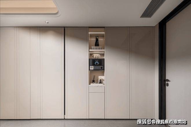 从电梯厅开始,就是酒店式定制化设计,弧形顶设计的电梯厅,门牌上设计了玉石托盘,可以放置家庭独有的摆件,注重仪式感的同时更具高定私享趣味性!