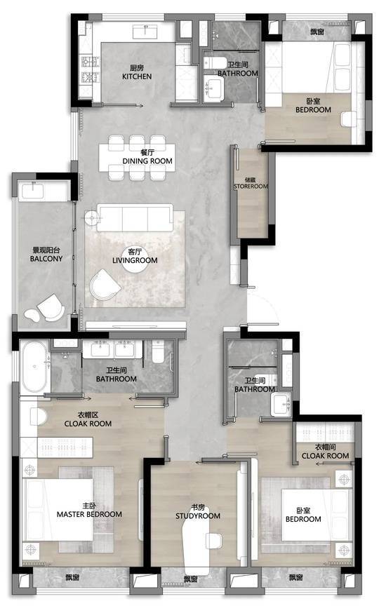 项目全精装交付,采用国际一线品牌,打造越级改善尺度。三大件选用大金中央空调、霍尼韦尔新风系统、威能地暖,营造“恒温恒湿恒氧”的居住环境;厨卫配置美诺嵌入式冰箱 + 洗碗机 + 烤箱五件套,杜拉维特智能马桶 + 高仪花洒,柏丽橱柜 + 铂浪高龙头,对标千万级豪宅标准;智能家居采用霍尼韦尔定制系统,支持灯光、窗帘、安防远程控制,提升生活便利性。同时,项目还采用三玻两腔隔音玻璃、同层排水系统、三重静音设计,实测隔音效果优于常规住宅30%,为业主打造一个安静、舒适的居住环境。