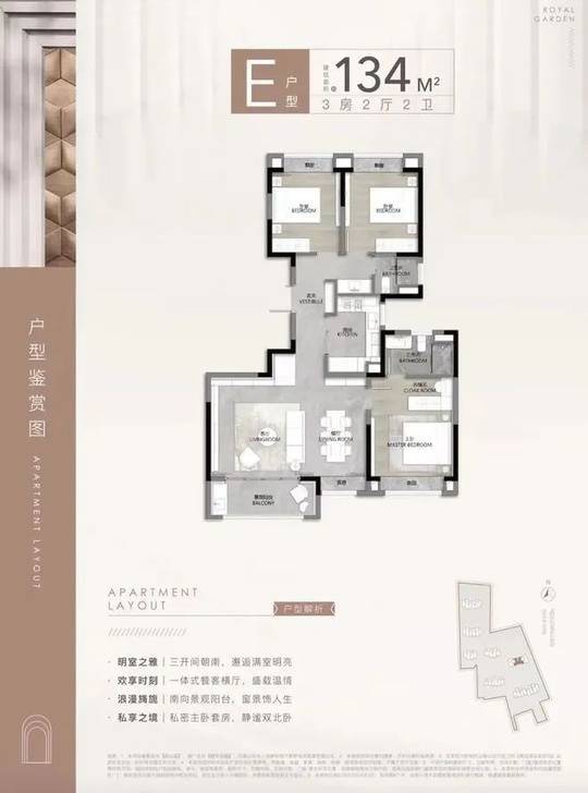 静安玺樾主推建面约94 - 165㎡的2 - 4房,得房率高达75% - 79%,远超市场平均水平。94㎡两房,双开间朝南,客餐厅一体化设计,主卧套房配置独立卫浴,总价1250万起,适合首改家庭;165㎡四房,270°转角端厅揽景入怀,双主卧设计兼顾隐私,东边套中高区可俯瞰城市天际线,总价约2354万,满足多代同堂需求。此外,还有98㎡、103㎡、104㎡、122㎡、134㎡等多种户型可供选择,无论是新婚夫妇、三口之家,还是三代同堂,都能在这里找到心仪的户型,实现理想的生活方式。
