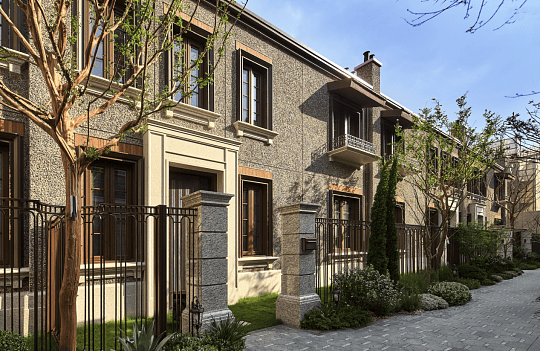 风貌别墅:复刻思南公馆同款卵石立面工艺,工匠手工逐块镶嵌经过28道工序处理的天然卵石,让粗粝石材在岁月打磨中形成温润包浆。硬山双坡顶搭配红色机平瓦,老虎窗与圆弧拱券的经典组合,将海派建筑的“红砖记忆”与“铁艺柔情”演绎得淋漓尽致。