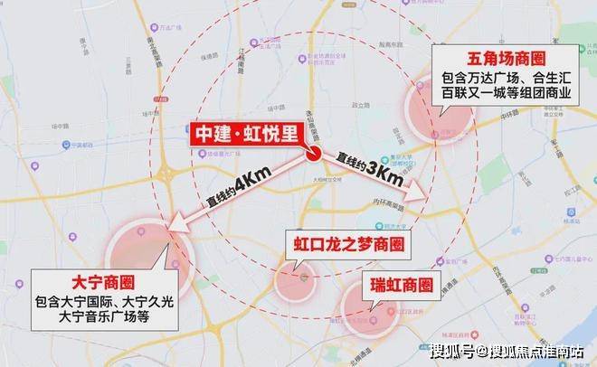 中建·虹悦里直线距离3号线大柏树站约750米,直线距离江湾镇站均约900米,步行可及。3号线也是多年才出一个轨交房。