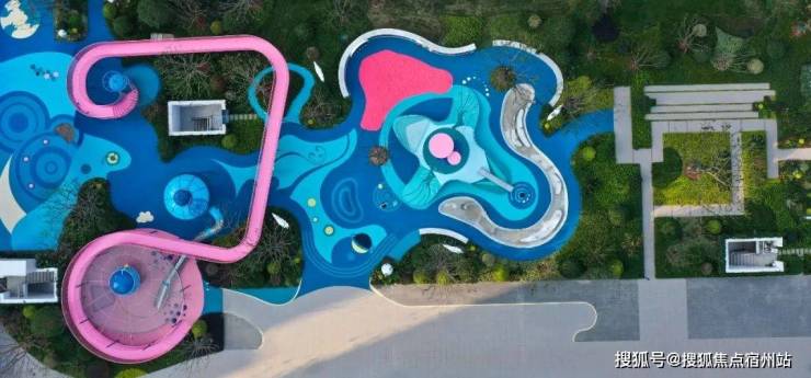 粉色沙坑、戏水池、攀爬架、螺旋滑梯、空中栈道、秋千、星球墙……一切关于儿童乐园的想象,都在陆家嘴锦绣云澜的儿童区内。