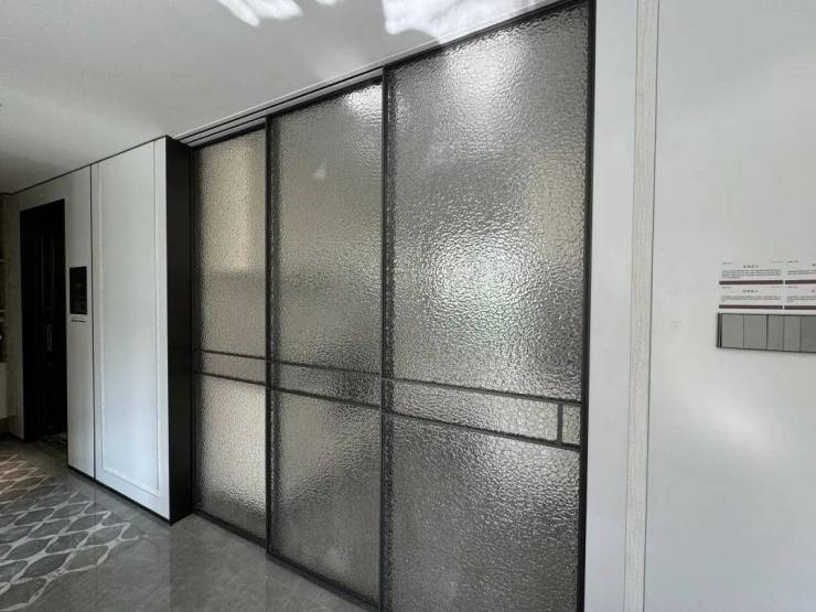 厨房移门是类似于水波纹的三移门, 不占空间, 上轨道设计,更易于日常清扫。