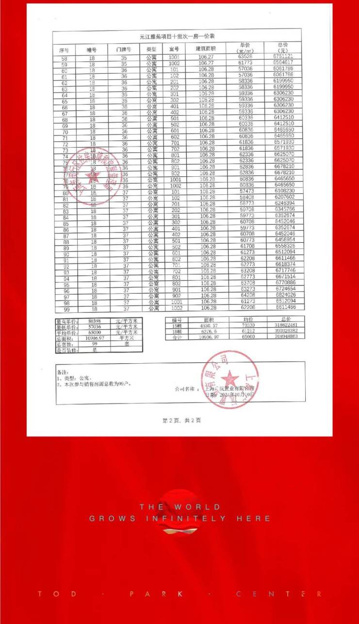 最新一房一价表: