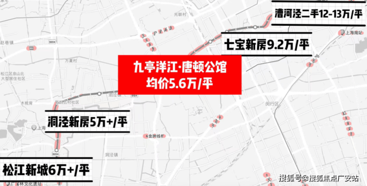 再看看往前5站的漕河泾,区域内的二手新房价格已经来到13万+/m²!往后的松江新城,新房也站上了6万/m²!对比之下,洋江·唐顿公馆是当之无愧的价格洼地。