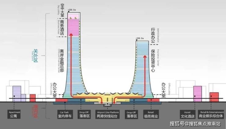 中央商务区不仅有300m临港三件套,还有全球首个实现境内关外概念的城市航站楼: