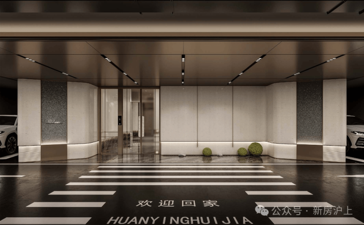 住宅的地下车库以“光影、质感”为设计理念,将其打造成一个充满艺术气息和自然韵味的空间。