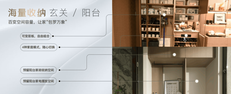 针对这点,保利·光合上城依然不惜成本只为品质,打造定制级全屋收纳系统,从玄关、厨房、卫浴、阳台四大空间,充分考量生活场景细节,随时随地满足收纳所需,带来4重海纳系统,让每一个业主都成为空间管理大师!