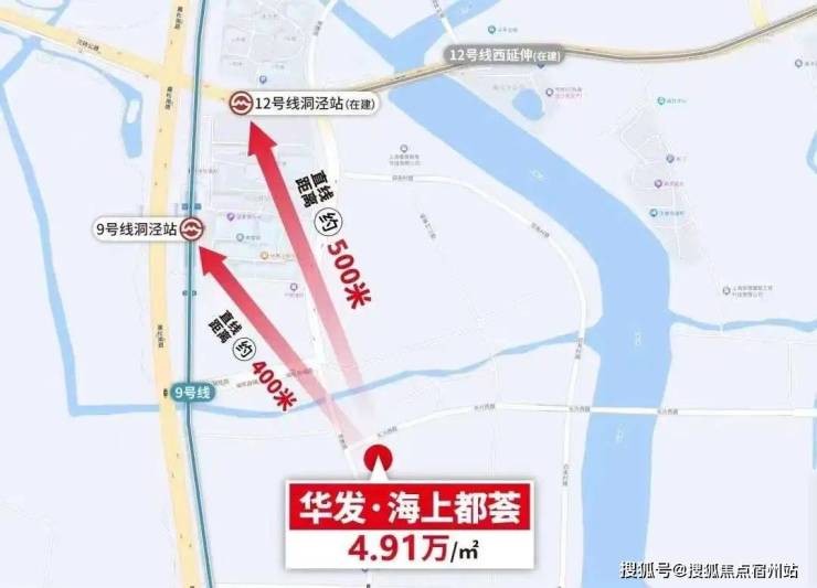 地铁12号线西延伸已经开工,预计2027年底通车,在松江境内从G60云廊沿沈砖公路东西穿过洞泾,设沪松公路、刘五公路站,在洞泾站与9号线交汇,未来通过12号线也能导入一定的人口;