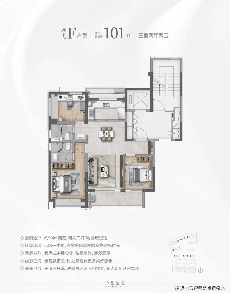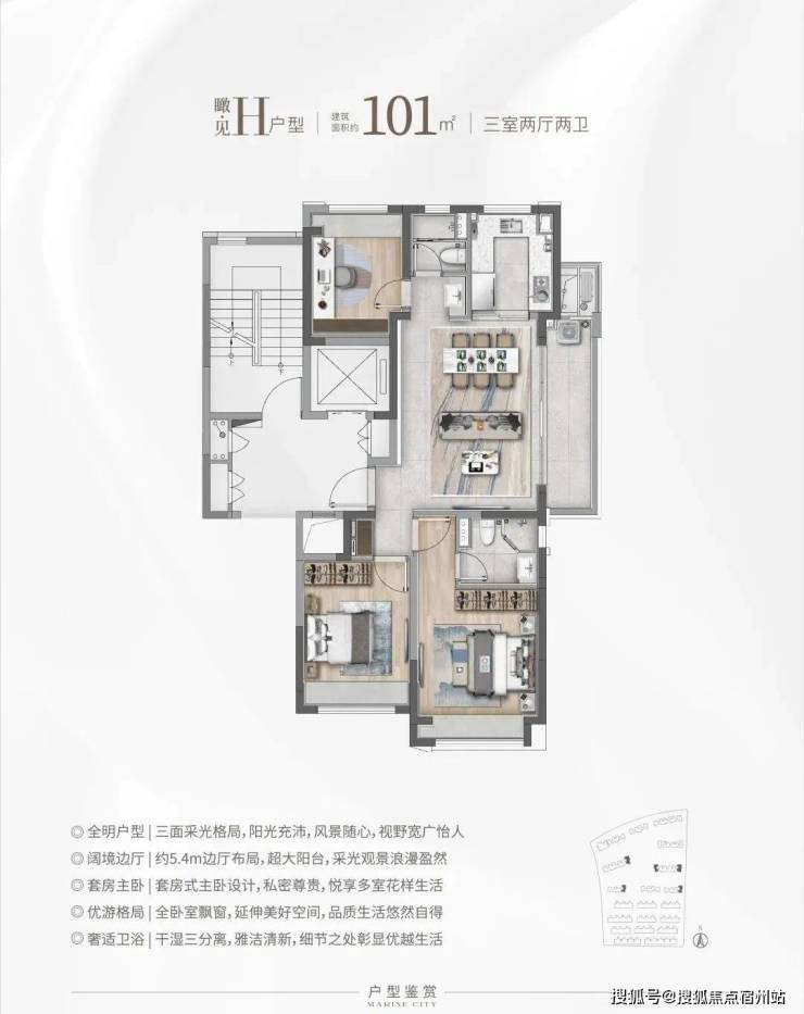 高层建面约101㎡3房2厅2卫