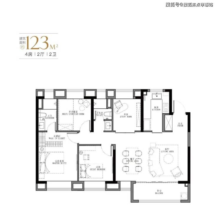 产品:103㎡、107㎡的三房两厅两卫及123㎡、129㎡的四房两厅两卫