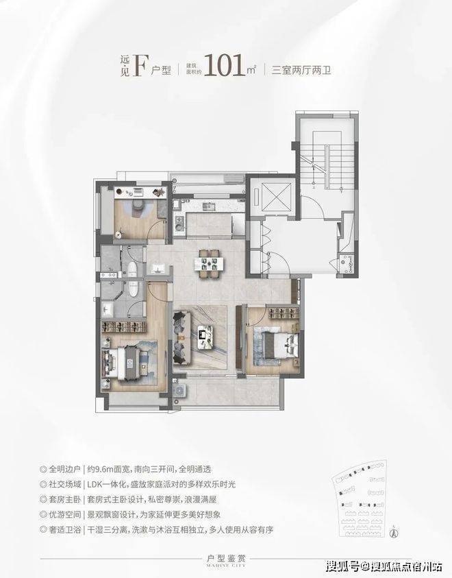 高层建面约101㎡3房2厅2卫