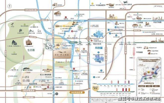 较近有明中广场,亚繁亚乐城、同乐生活广场。距离松江印象城、万达广场仅3公里左右,自驾10分钟内即可到达;另外在佘山站地铁上盖,规划有部分商业用地,洞泾未来湾沪松公路地铁站上盖还规划有大型的商业配套!华发海上都荟售楼处电话400-8855-420