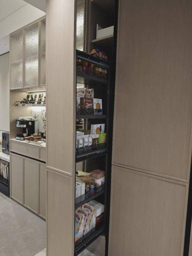 本次还增加了非常实用的零食柜和餐边柜,未来业主在这里可以作为自己的一个日咖夜酒区域。