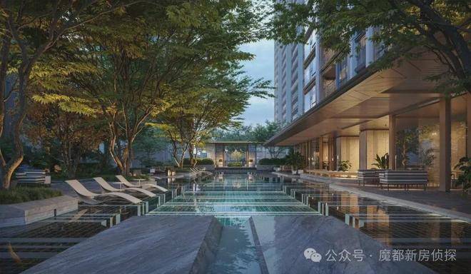同时,以超奢戏水池与尊享休闲会所为核心,联动架空层,串联休憩廊架与横向端景,打造核心奢享场景。另外,整个项目拥有包括泛会所(戏水池、健身场所)、场景化网红架空层泛会所等全维社交场景。