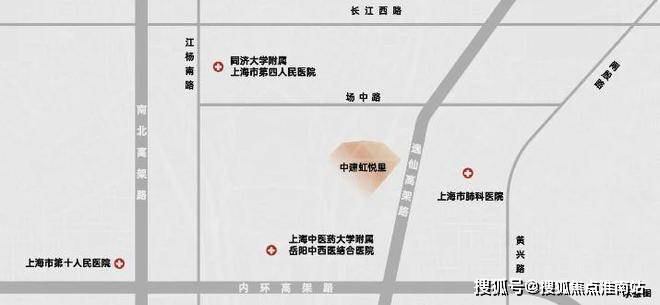 项目是真正中环旁新盘,直线距离中环仅约600米;同时这一段中环和内环紧挨着,因此中建·虹悦里直线内环也仅约1.2公里;此外,东侧还邻近逸仙高架路