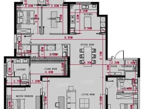 独立电梯厅、L 型玄关、中西厨、多功能书房