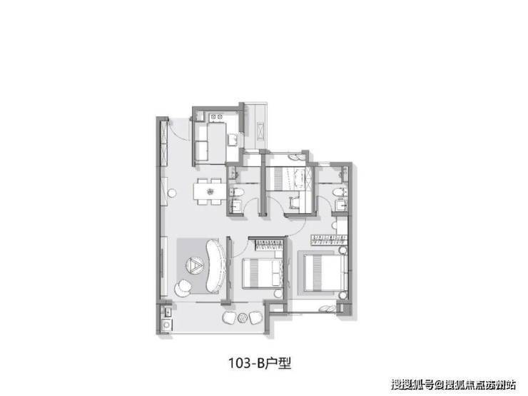 建面约103㎡3房2厅2卫样板间▼