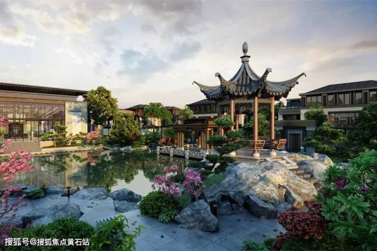 社区内部以“一轴五街八园十二巷”布局,融合北派皇家园林与苏式园林特色。约3500㎡中央景观区融汇山池、六角亭、戏台、石舫等中式经典要素,实现一步一景的诗意居境。