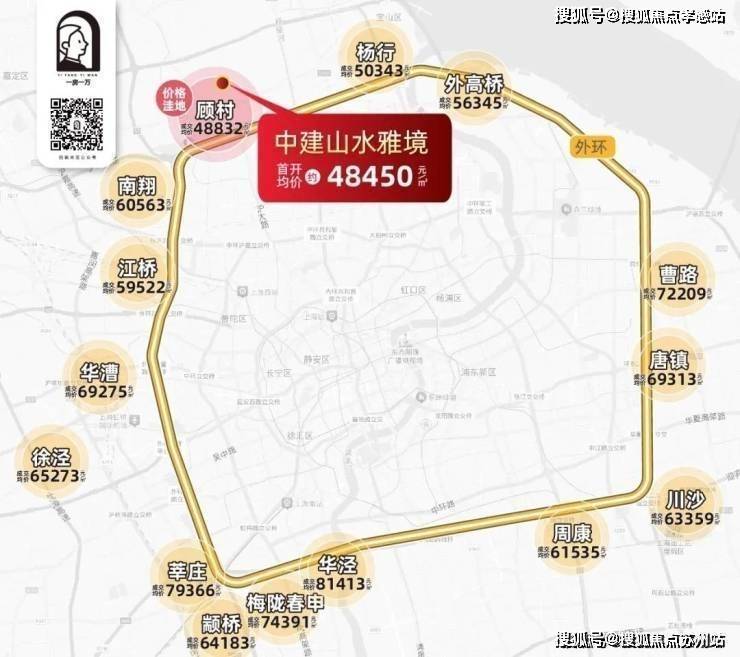 中建山水雅境营销中心VIP:400-9966-940✔✔✔(预约热线)2024上海外环线部分板块新房成交均价示意图