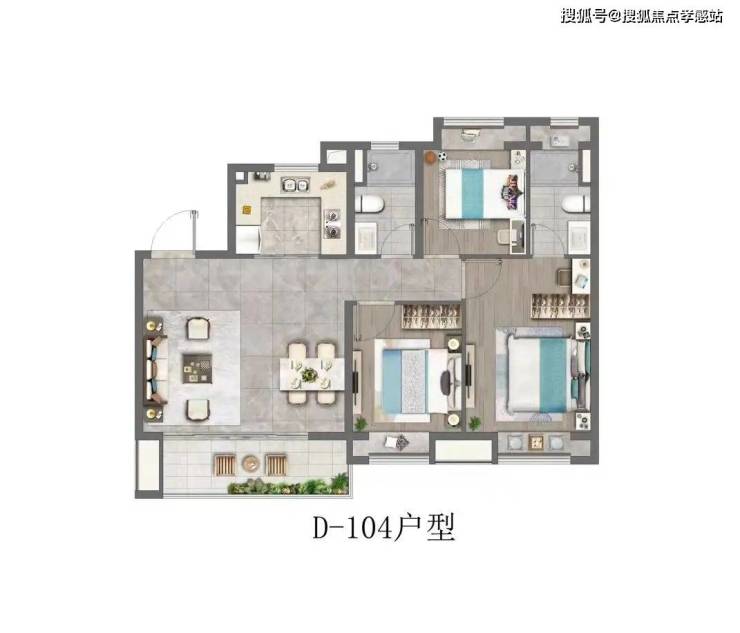 两间卧室分别位居于客厅两侧,私密性更佳;