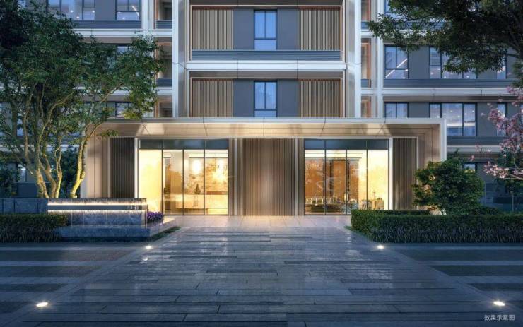 【归家礼序】以一轴一带多境的格局,打造迎宾客厅、仪式水景、景观连廊、艺术水苑、森氧绿境、精装大堂六重归家礼序。