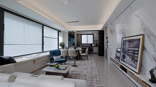 客餐厅相连的大横厅,匹配同尺度超大面宽阳台,室内阳光满溢。