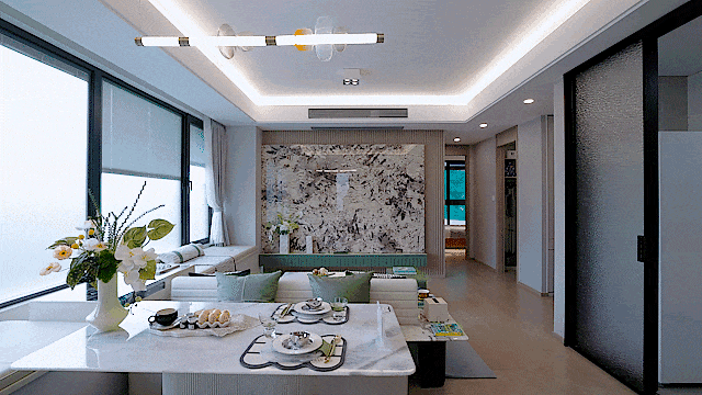 约5.6米阔绰边厅+景观大飘窗的设计,将阳光和景观充分引入室内。