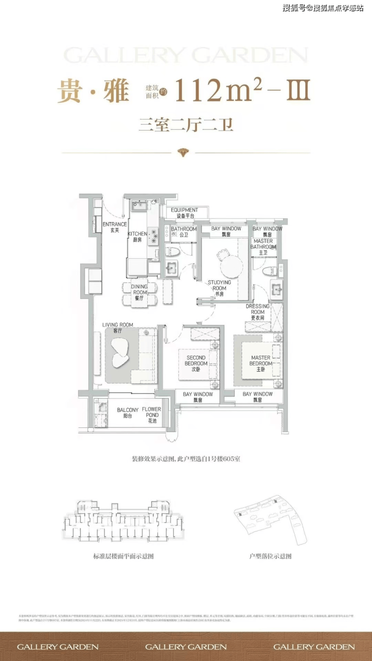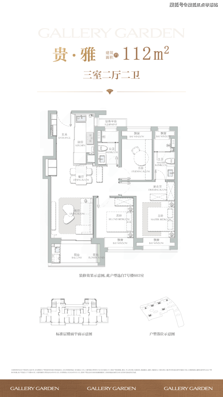 项目舍弃了传统逼仄的百平三房,将最小面积提升到了建面约112㎡,而这12个平方的提升,让整体户型的空间尺度感达到了新的高度。