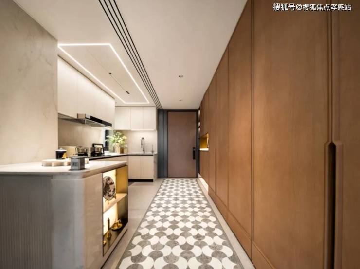 这是一个非常巧妙的设计,比如将冰箱塞入这个凹槽,从而释放厨房的冰箱空间,延伸灶台的面积,或者可以做岛台...