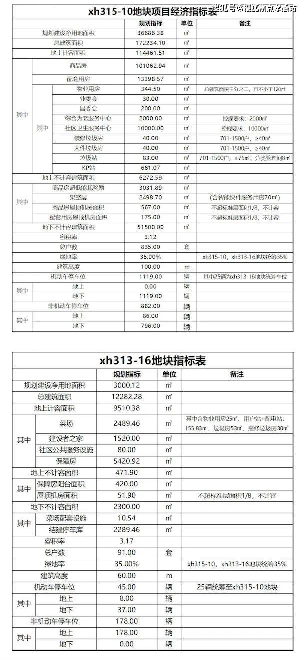 其中xh315-10地块为三类住宅组团用地(90%)、社区级公共服务设,施用地(10%),总用地面积约36686.38平方米,容积率3.12,限高100米,总建筑面积约172234.10平方米,地上计容面积约114461.51平方米,其中商品房面积约101062.94平方米,规划住宅套数835套。
