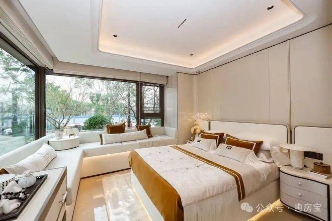 中环麓岛售楼处电话:400-8787-740主卧 270° 景观飘窗几乎无墙垛的设计,定制L型飘窗垫,沿转角的两面墙,安装定制靠垫,再放上1-2个小抱枕就是把飘窗变成“发呆圣地”。