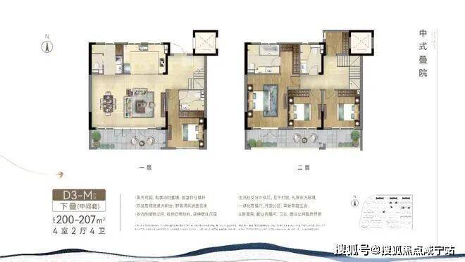 叠院(99-213㎡):赠院子+地下室+露台,三代同堂私密空间;