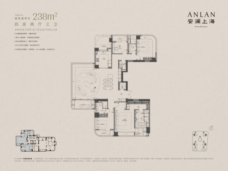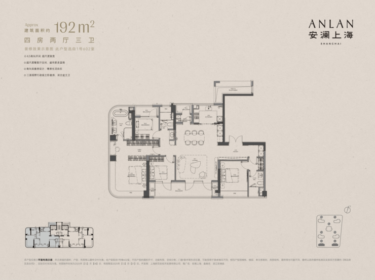 据现场消息,安澜上海预计将于12月26日正式开盘。本次首开推出的产品涵盖了建筑面积约192㎡至365㎡不同面积段的多种选择。