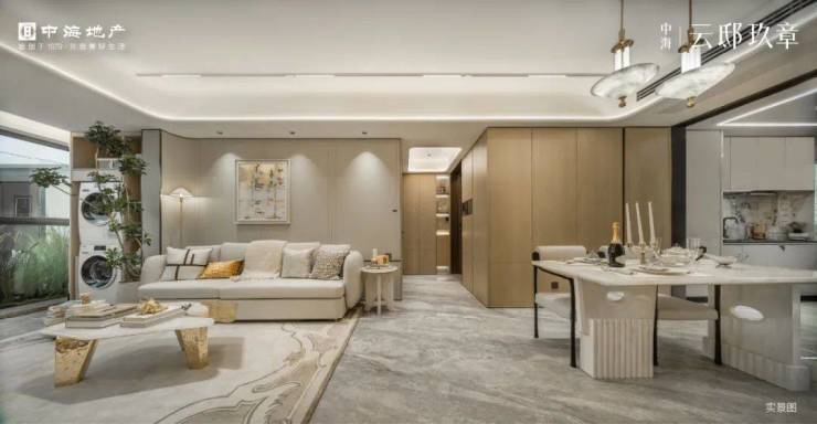 厨房、餐厅、客厅及阳台一体化设计,尺度感十足!