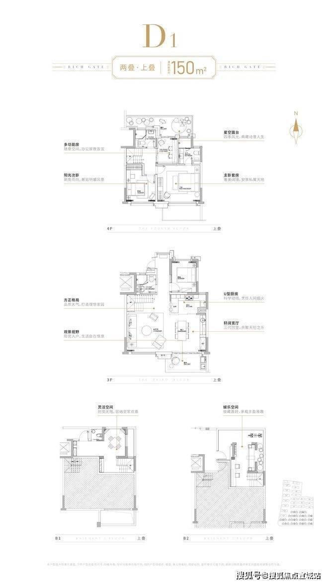 两叠产品亮点可谓非常突出,相较项目前期,稀缺性还将更胜一层!自然其吸引力也将更强!值得收藏!两叠下和两叠上均有双层地下室;下叠南花园,北面入户花园;上叠北花园,露台,坡屋顶空间。来看户型图: