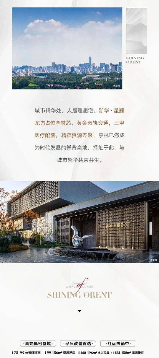 ✔✔新华星耀东方【售楼热线】✔✔✔营销中心热线☎400-9955-415☎️☎️✅✅✅售楼处地址☎400-9955-415☎️☎️✅✅✅《官方认证》是位于上海市金山区亭林镇红梓路与亭浩路交汇处的高端住宅项目,由新华地产旗下上海曜金房地产有限公司匠心打造。项目地处金山“一城两轴”规划核心,是区域内罕见的低密墅居社区,总占地面积约4.5万平方米,总建筑面积约12.7万平方米,容积率仅1.8,绿化率高达35%,规划有高层、洋房及叠墅产品,满足不同家庭的居住需求。