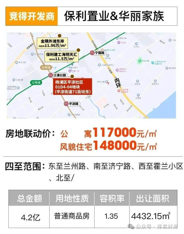 蘭桂坊855售楼处电话/地址:400-8787-740√√2023年12月5日,杨浦区平凉社区01D4-04地块(平凉街道71街坊东)以底价出让,华丽家族和保利置业联手拿下。该地块容积率1.35,小洋房联动价11.7万/㎡,风貌别墅联动价14.8万/㎡。