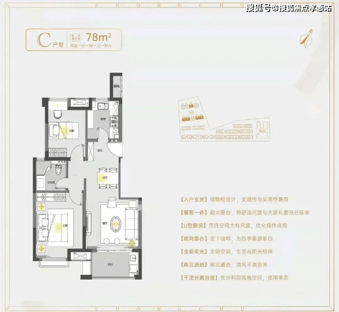 春申阳光官方售楼处:400-9966-940💰💵 建面约78㎡2房1卫户型,做到了双开间朝南+南北通透+卧室带飘窗+动静分离,功能区划分、动线都非常清晰。