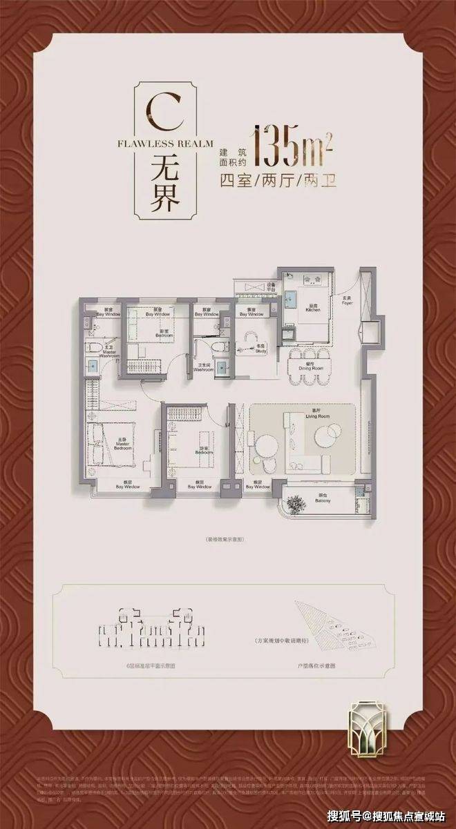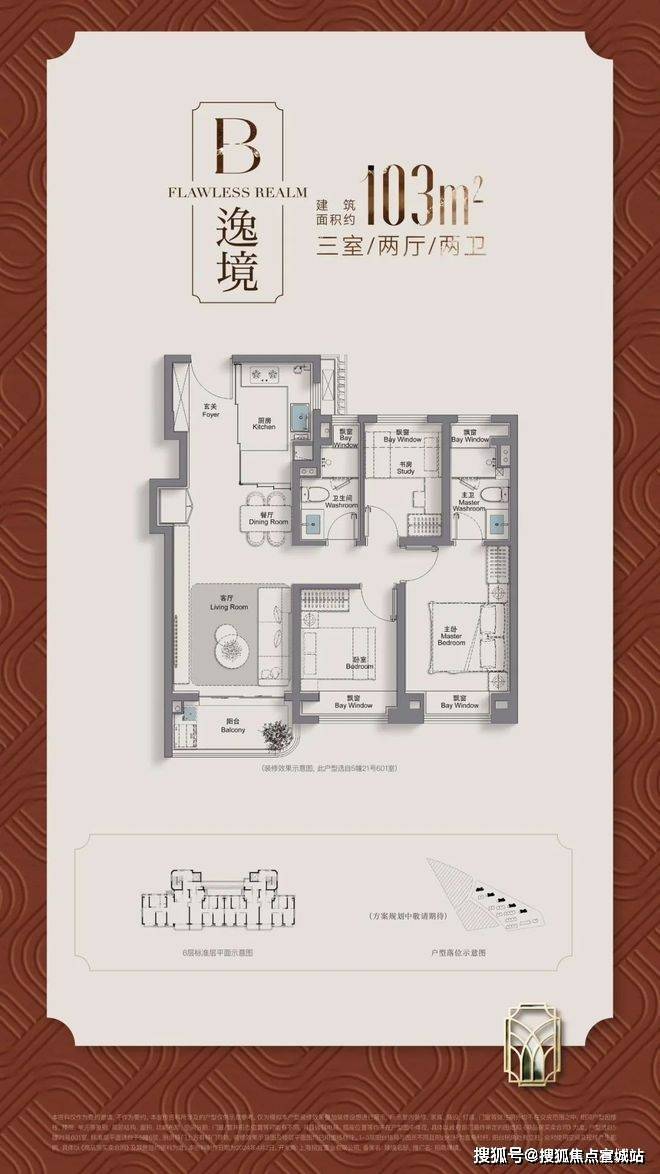 建筑面积约95/105㎡三房,进阶改善绝版“三阳台”户型