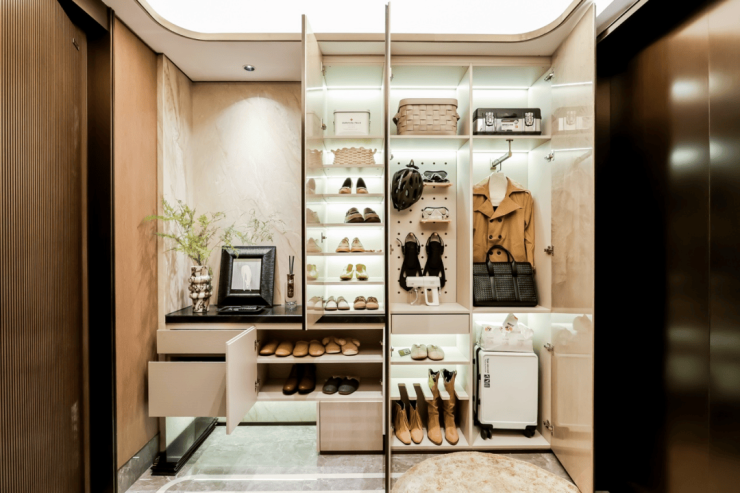 首先是区域首个「一梯一户+全明电梯厅」,将电梯厅拓展为“户外玄关区”,业主可以存放鞋柜、滑板车等,充分释放空间潜力。