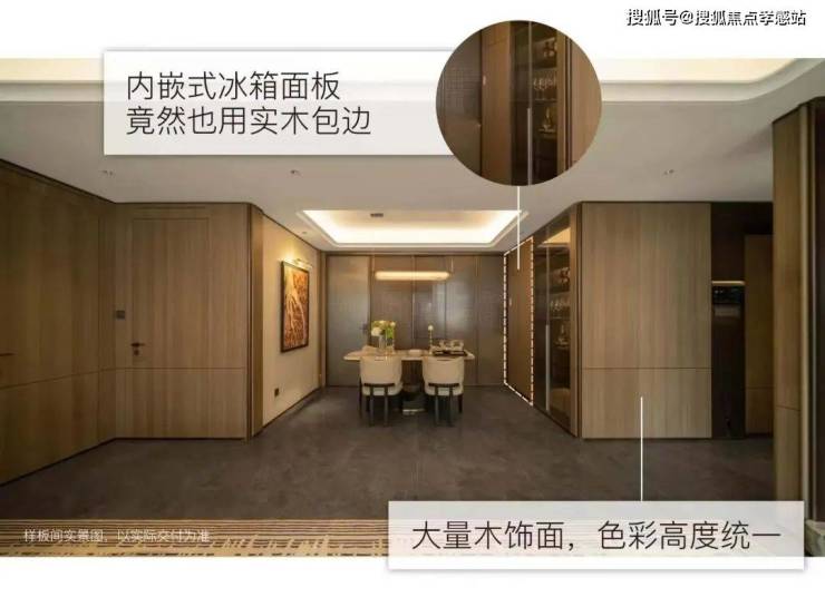 走进江湾金茂府售楼处电话✆:400-8855-420✆的样板间,“高级感”扑面而来.室内采用一体化设计语言,大量木饰面铺设墙面,质感与温馨并存,建面126㎡内嵌式冰箱面板也采用木饰面以保持色调统一.户内门通过巧妙材质衔接与色彩过渡,化作“隐形门”,嵌入式夜灯与墙面完美融合.客厅吊顶采用多层次弧形工艺处理,转角处弧线造型优雅又安全,主卧内卫生间墙面也做了弧线收边,地面通铺地砖在弧线呼应下更显开阔.