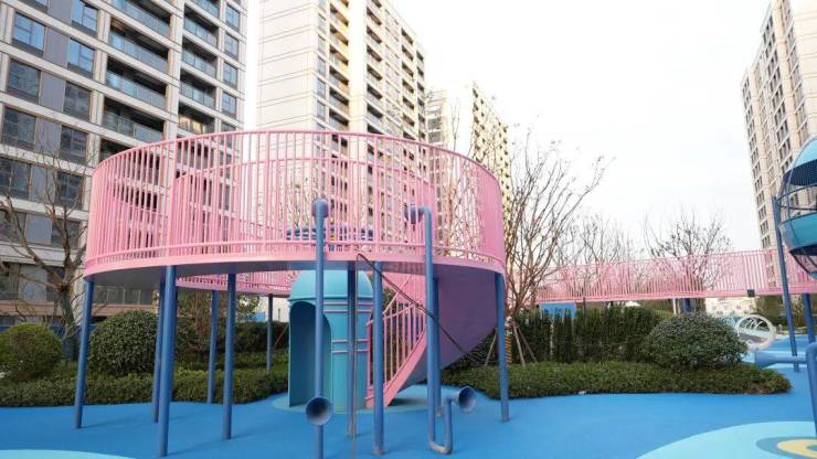 这片精心规划的游乐区,配备了丰富多样的儿童游乐设施,如太空组合滑梯、太空科普墙、粉色沙坑、无动力水池等,孩子们可以尽情探索、乐趣无限。