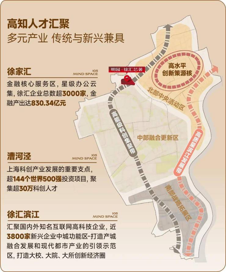 三区交汇 催生活力与繁华,明园·徐汇芯著坐拥徐家汇CAZ、古北CAZ、漕河泾开发区,三大辐射圈,享国际繁华版图。