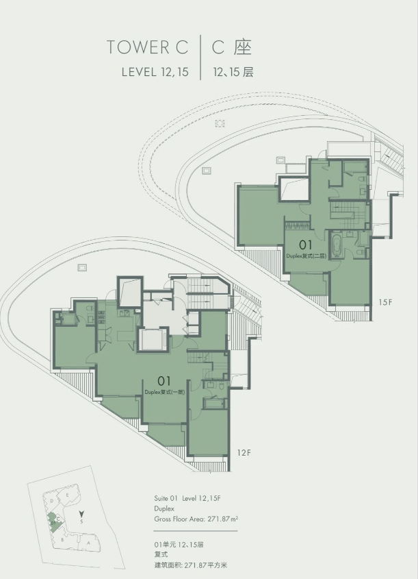 271-314㎡ 顶层复式:私享独立电梯厅+80㎡双露台,目前仅剩1席