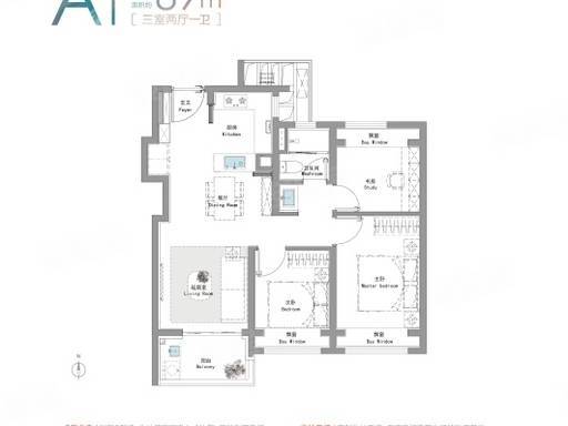 89㎡ 3 房 2 厅 1 卫:经典刚需,三开间朝南
