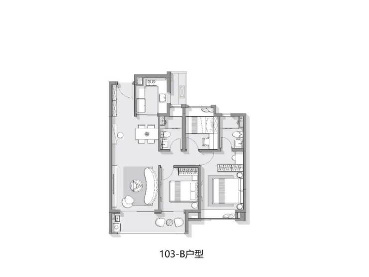 主力约103㎡3房2卫,经典LDKB餐客厨阳一体化贯通中轴的设计,极力减少过道、转角等空间浪费,撑起气场的同时,也提升了户型的实用性、家庭成员的互动性和场景感。