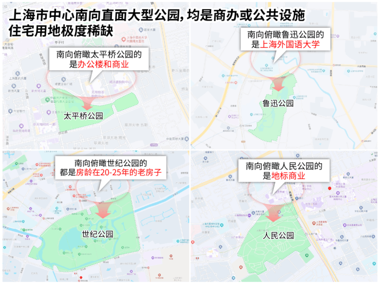公园边界有限: 公园的周长是固定的,能真正“直面”公园(而非斜视、侧视、有遮挡)的土地面积极其有限