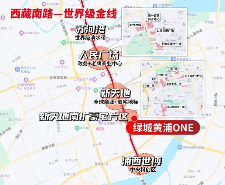 向北连接苏河湾世界级滨水区;向南直达人民广场,汇聚市政核心与经典商业地标;