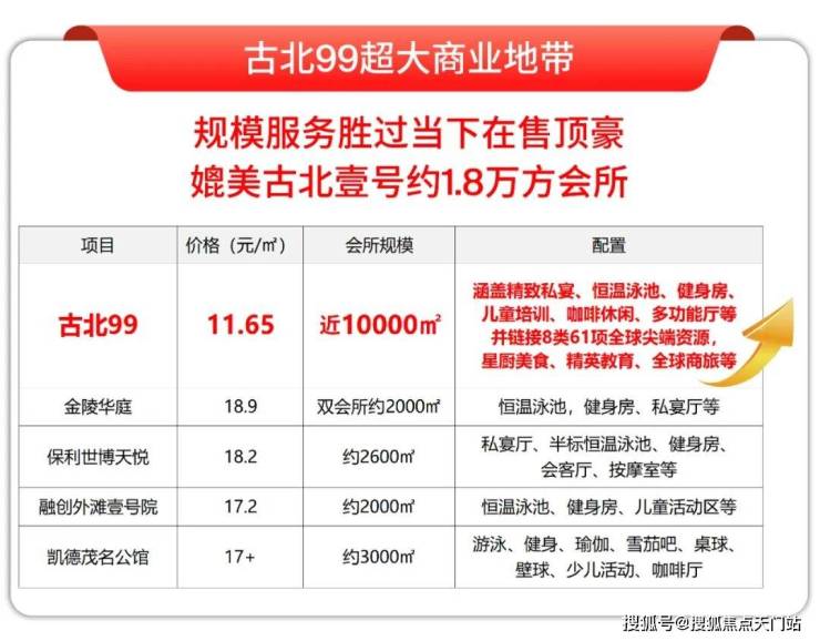 ✔顶豪圈层体验。超大商业地带,搭配缦合物业服务,规模与服务直追古北壹号1.8万方会所,甚至超越当下在售的顶豪项目,在这里,不仅是安家,更是身份与品位的象征。
